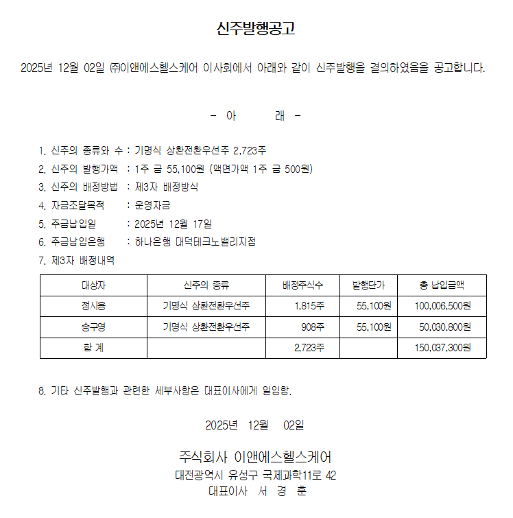 신주발행공고